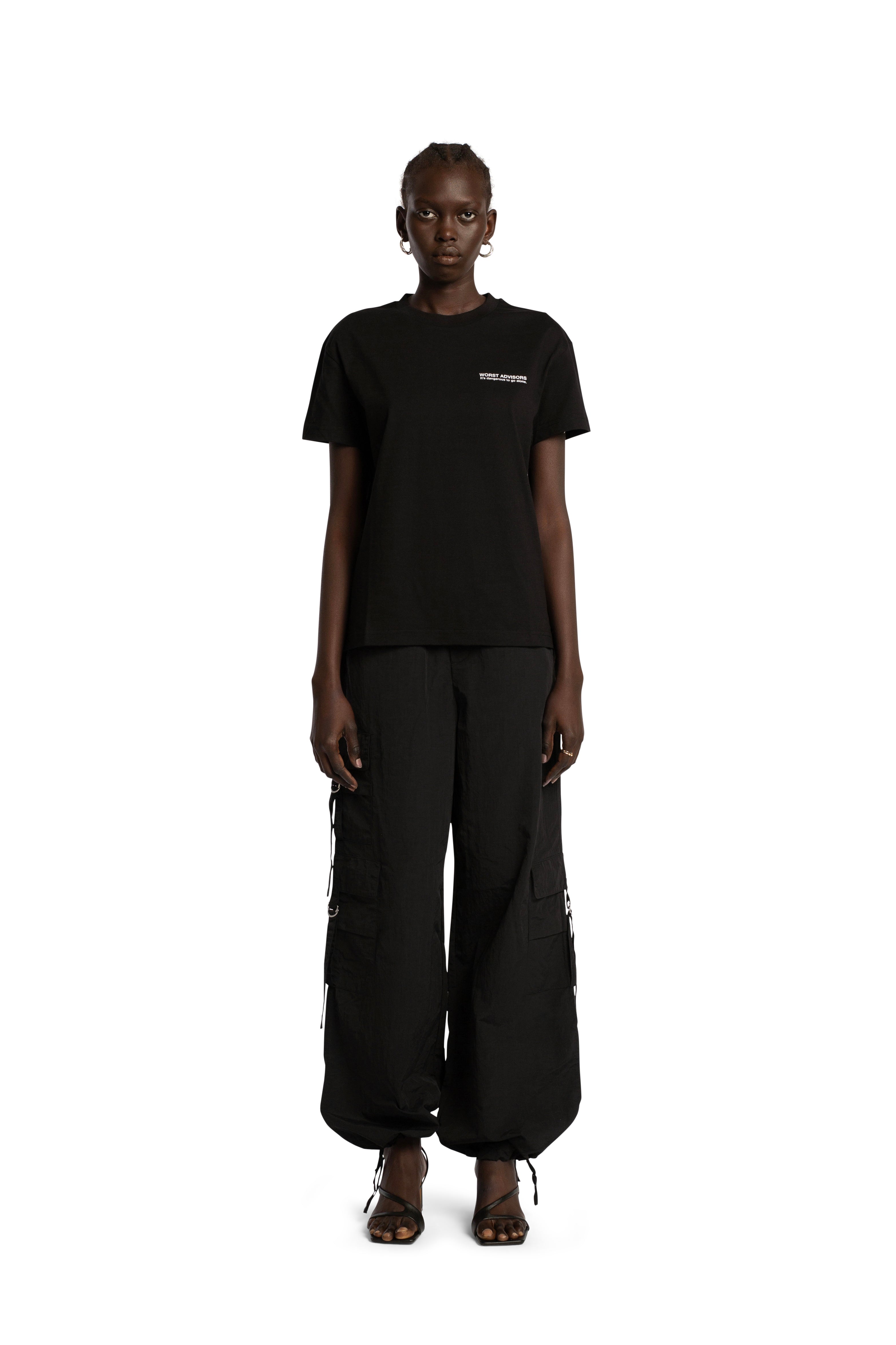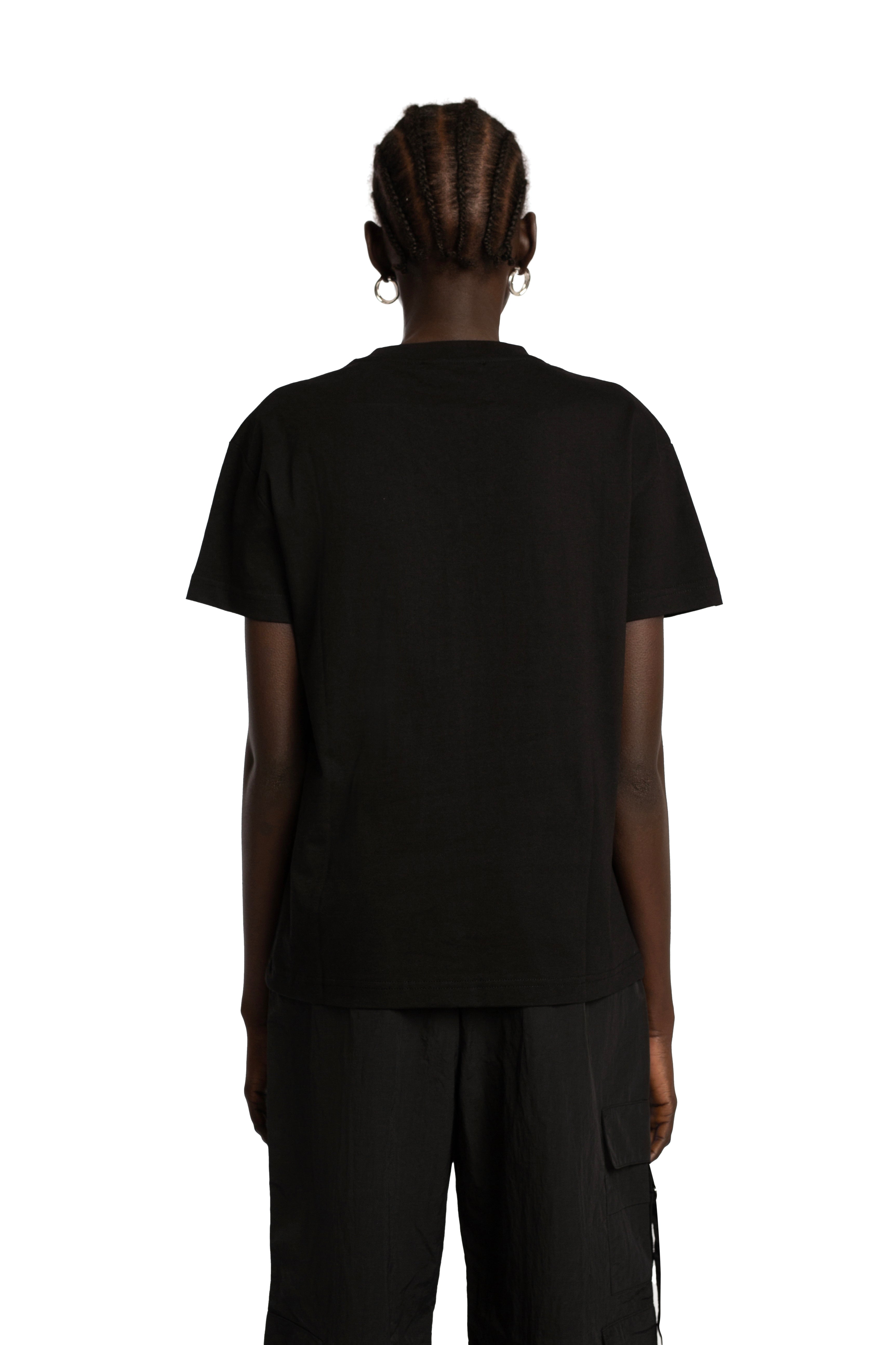 Short sleeves T-Shirt in black with white slogan logo printed at chest. Crewneck collar. Classic Fit.